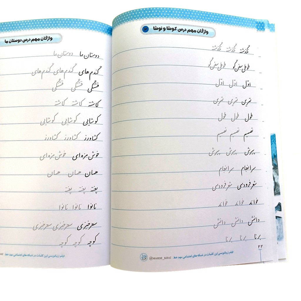از آنجا که کلمات مهم و مشکل کتاب فارسی درس به درس در این مجموعه سرمشق داده شده است ،آموزگاران عزیز می توانند این کتاب کار را جایگزین دفتر مشق شب نمایند